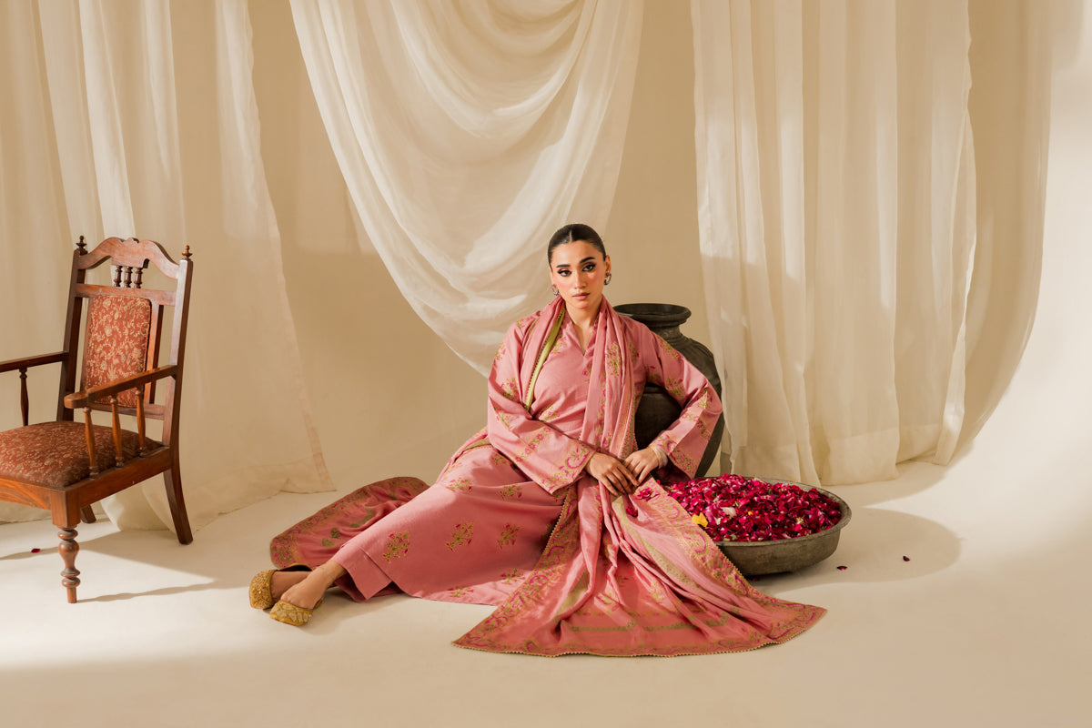 Khaddi cotton silk is a blended textile made by combining handwoven khaddi (a traditional, slightly textured cotton) with silk fibers. The result is a semi-luxurious fabric that balances cotton’s breathability and softness with silk’s sheen, strength, and smooth drape.