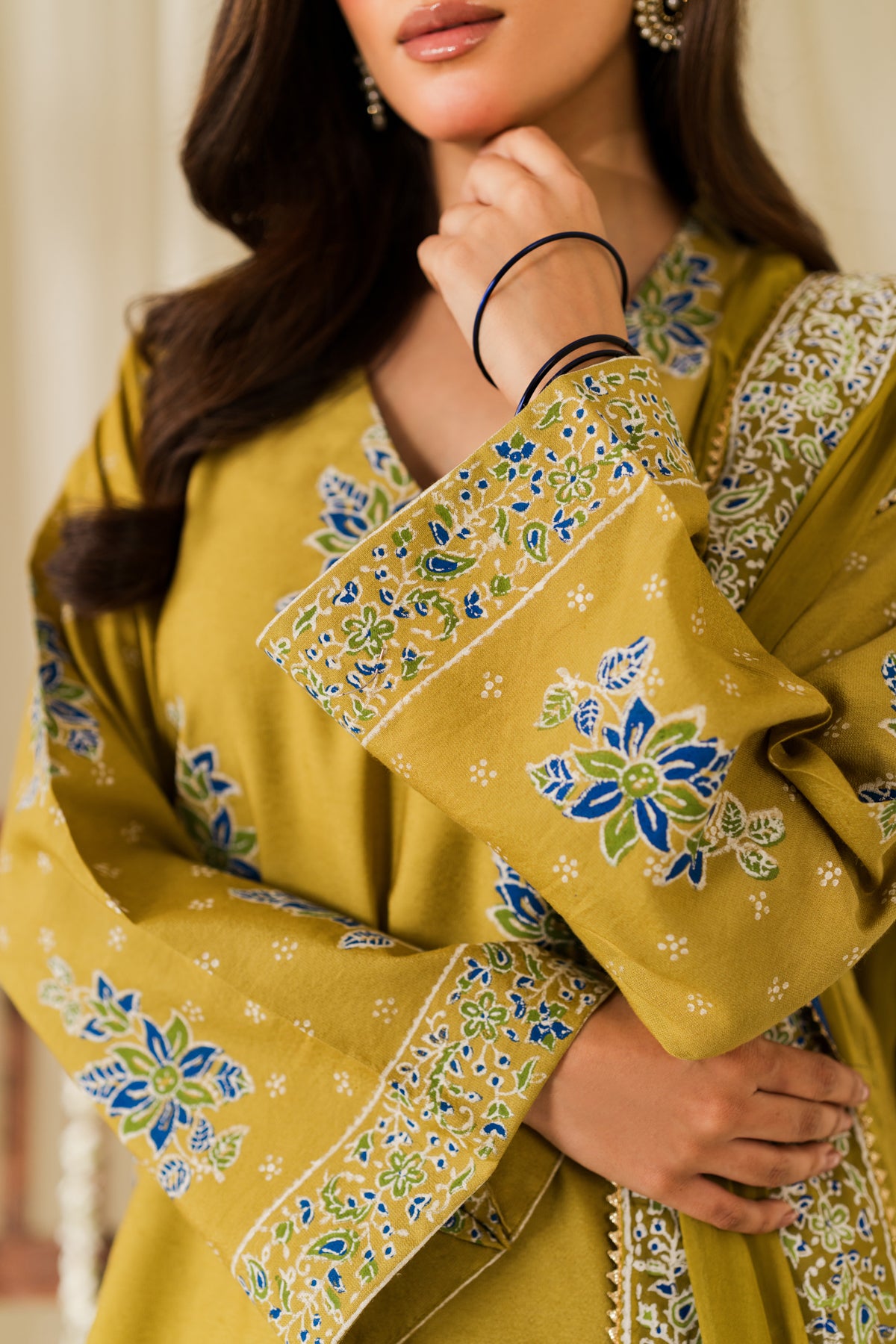 hues kissed with blue hand block florals tell a story of celebration rooted in tradition.